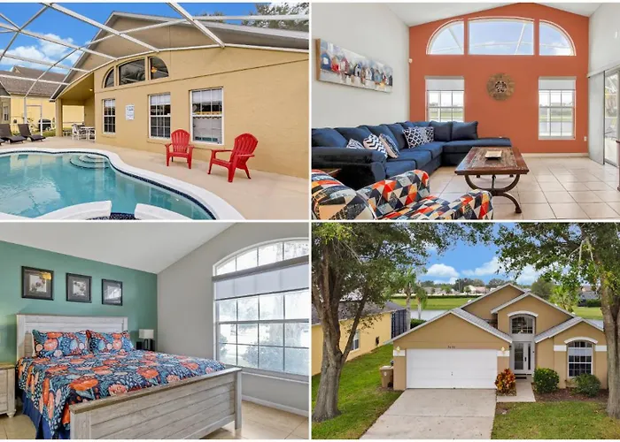 Die 3-Zimmer- Star Lake Oasis - 4 Bed Family Pool Home liegt im Stadtviertel Celebration und bietet einen privaten Swimmingpool, einen Jacuzzi für die größtmögliche Entspannung der Gäste.